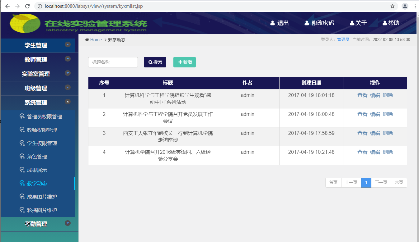 本项目是基于Spring实现的实验课程管理系统包含实验室管理、考勤管理、课程成绩报告管理等